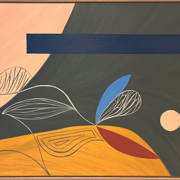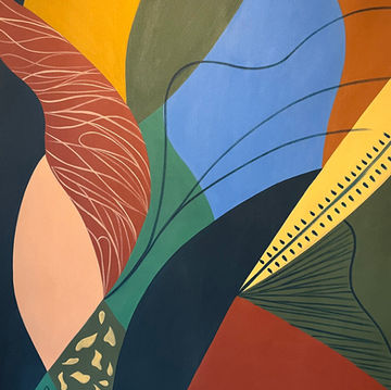 Carina Camargo (1985) vive e trabalha em Ribeirão Preto. Publicitária, designer e artista visual, constrói sua poética a partir do diálogo entre estrutura e sensibilidade — entre o rigor aprendido no design e o desejo de recompor o que o tempo corrompe. Sua trajetória no campo da comunicação visual lhe deu repertório técnico e clareza formal, mas foi no silêncio do ateliê que encontrou o que realmente a move: o retorno à essência. Entre cores chapadas e gestos intuitivos, Carina transforma a racionalidade aprendida em gesto de escuta — um modo de restituir presença àquilo que se perdeu. Suas composições exploram o encontro entre o geométrico e o orgânico, a harmonia e o imprevisto.